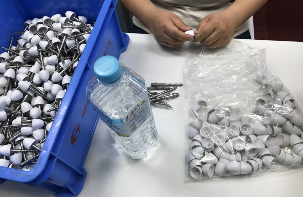 こんにちは!ワークスタジオ藤が丘です。 今日はネジの組み立て(キャップ付け)の作業工程をお届けします♪ 画像はネジに白いキャップを付けている様子です。 出来上がったネジは、他のネジやワッシャーという部品と一緒に袋に封入します。 利用者さんからは...