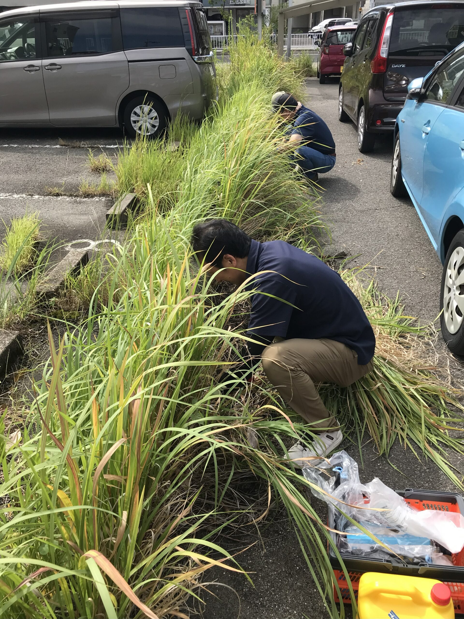 先日、駐車場の除草作業をマンション清掃を行っているチームで行いました!